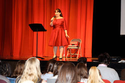 Mélanie Gall, a professional singer who has performed in French and English around the entire world, led students in a lively sing-along event and taught them all about the many details of Piaf's life, loves, and music.