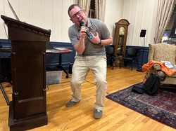 After the presentation, a rousing Karaoke competition ensued, and the talent was dazzling. Great performances from many of our talented AATF Connecticut members showcased both their linguistic and vocal talents. Evan Downey won the competition with his enthusiastic rendition of a current hit by Les Trois Gourmands, "À nos souvenirs."